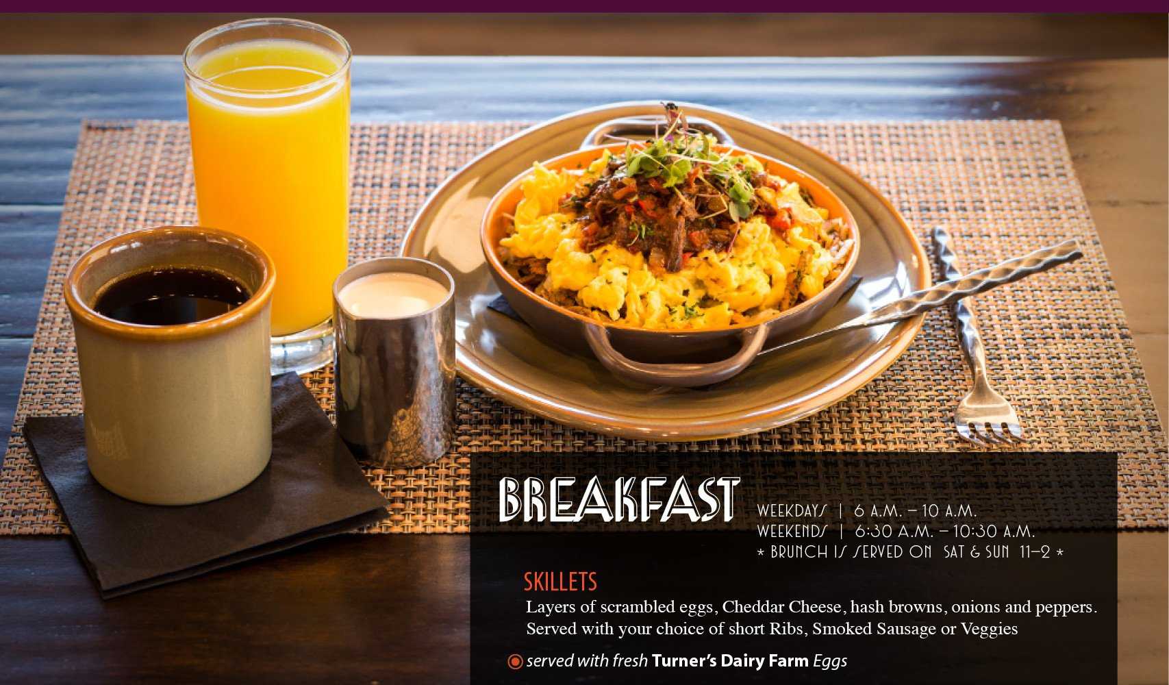 Breakfast 6:00a.m.-10:00a.m. 6:30a.m.-10:30a.m.